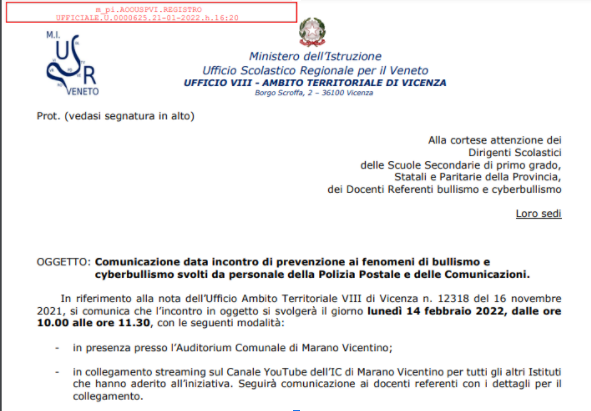 Incontro Prevenzione Fenomeni Bullismo/Cyberbullismo
