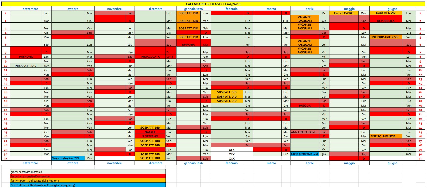CALENDARIO SCOLASTICO 2025-2026
