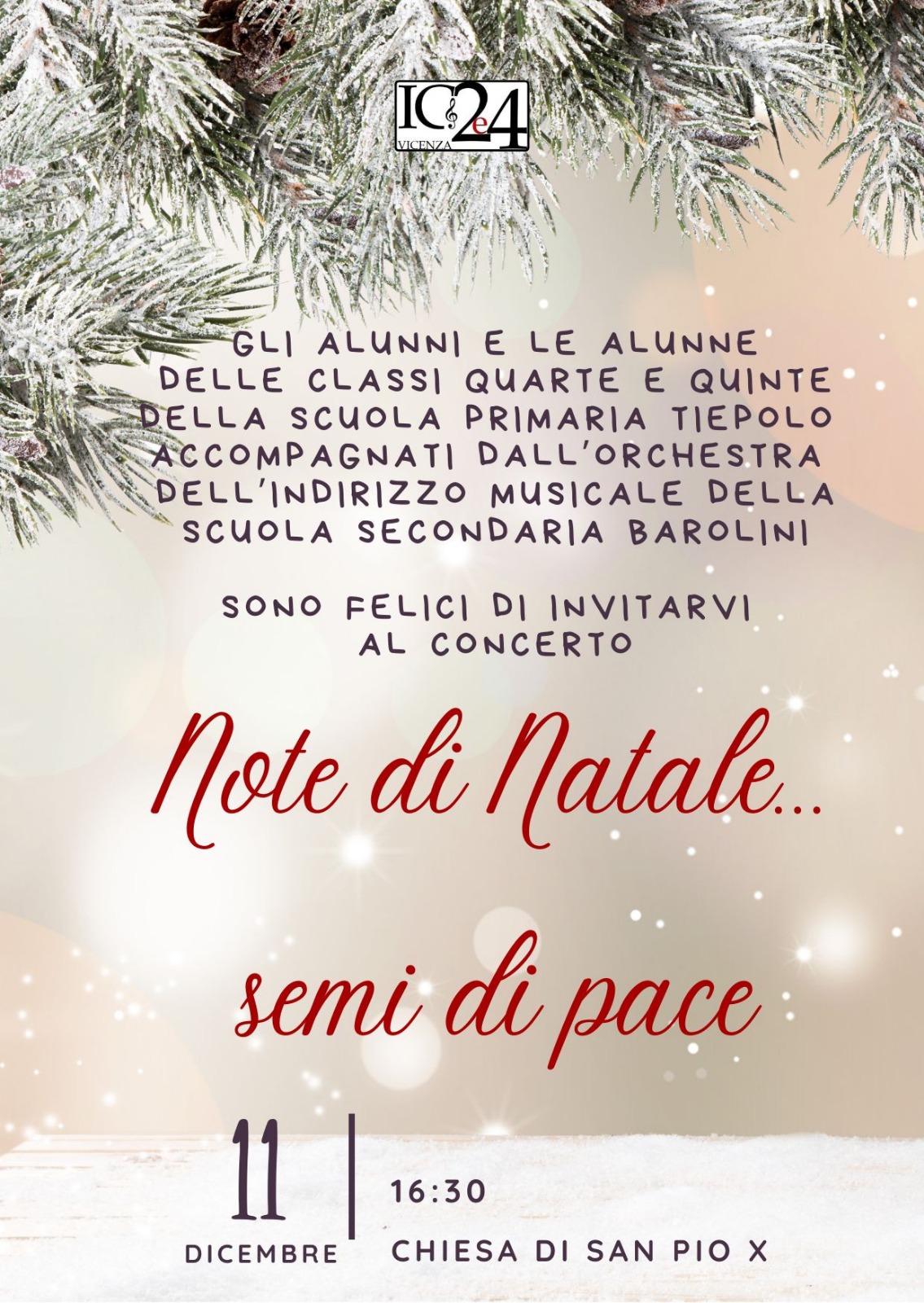 Le classi quarte e quinte della scuola primaria Tiepolo, accompagnate dall'orchestra dell'indirizzo musicale della scuola secondaria Barolini, vi aspettano giovedì 11 dicembre alle ore 16:30, presso la chiesa di San Pio X per augurarvi un felice Natale!!!