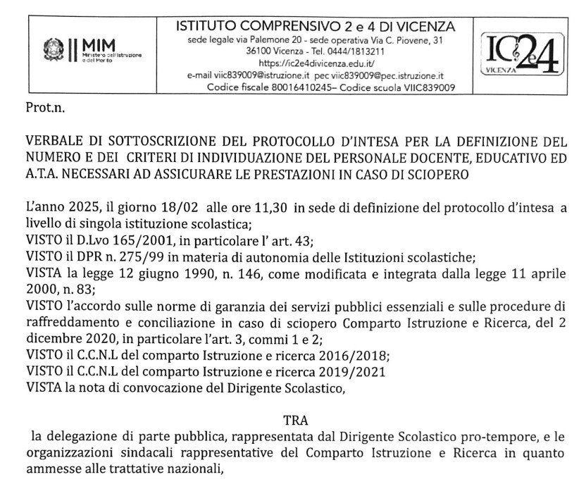 PROTOCOLLO D'INTESA PER CONTINGENTE MINIMO IN CASO DI SCIOPERO