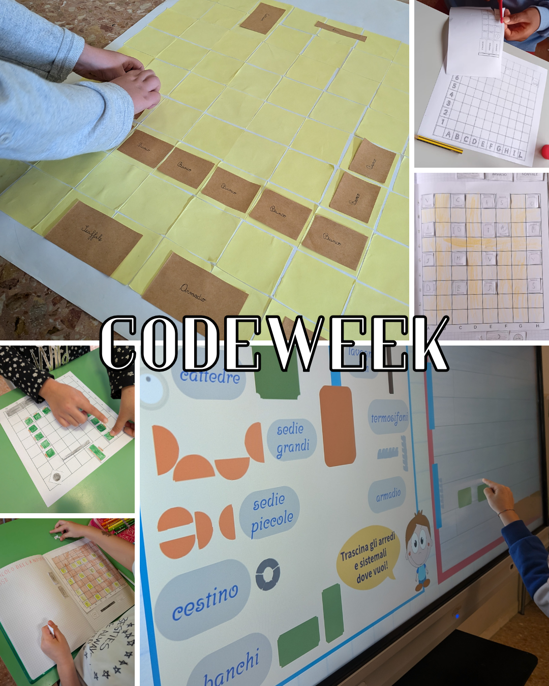 In occasione del progetto europeo Codeweek, gli alunni delle classi seconde della scuola primaria Tiepolo, hanno vissuto l’esperienza di programmazione riferita ad un luogo vissuto in prima persona: l’aula scolastica. Tra reticoli, coordinate, mappe digitali e pixel si sono orientati nella realtà, su carta e in digitale.